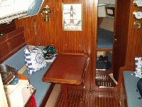 Salon steuerbord mit 2 Kojen (davon eine Lotsenkoje), Kleiderschrank, Ablagefächer und Schwalbennester, Stauraum unter den Kojen mit Flascheneinteilung, Kartentischeinrichtung mit Kartenfach, Schaltkasten mit Schaltern und Sicherungsautomaten